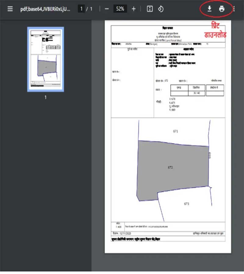 - यह सब करने के बाद आपके समक्ष चुने हुये प्लाट का मैप रिपोर्ट आ जाएगी। जिसे आप प्रिंट और डाउनलोड भी कर सकते है।