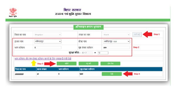 Bhu Lagan Bihar भुगतान करने की प्ररिया नीचे दी गई है